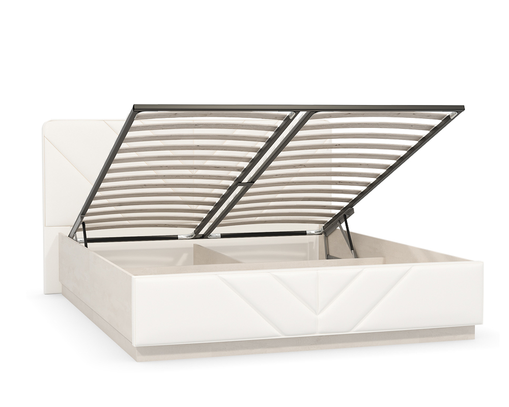 Комфорт при эксплуатации и легкость в уходе гарантирует, выполненное из экокожи, мягкое изголовье и изножье кровати. Общий мотив всей коллекции повторяет декоративная прострочка.