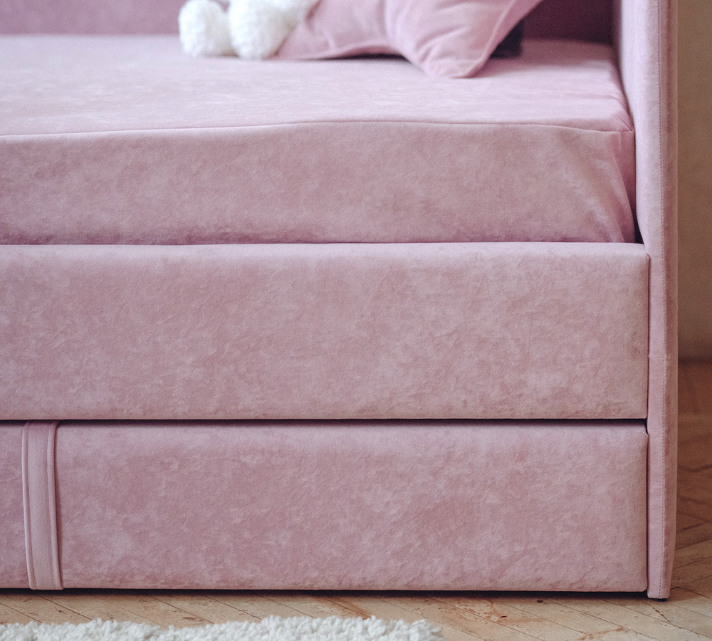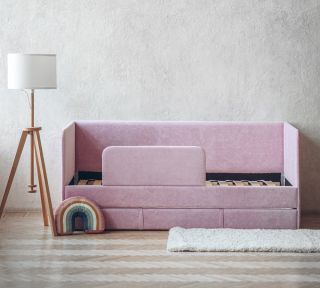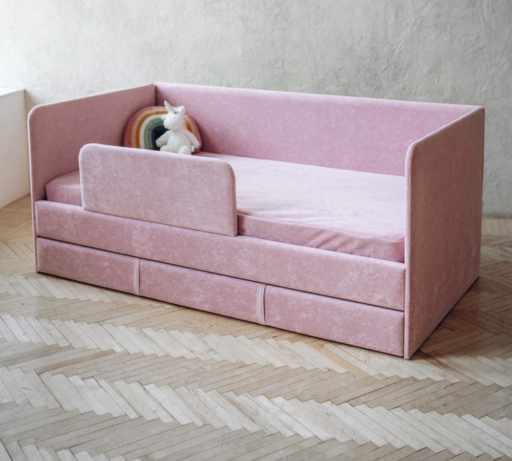 Детский диван-кровать 90*180 см DREAM розовый с ящиком и защитным бортиком, кровать детская от 3х лет.