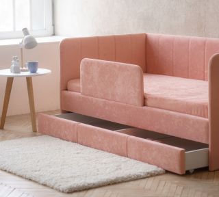 Детский диван-кровать 90*180 см DREAM line в полоску коралловый с ящиком и защитным бортиком, кровать детская от 3х лет (без матраса)