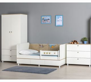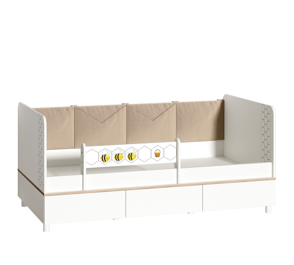 мягкий элемент с карманами и съёмный бортик входят в комплект кровати