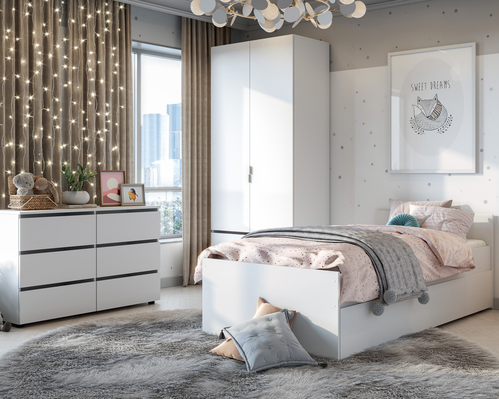 Корпус/Фасад: ЛДСП «Белый» (тиснение древесные поры)/ЛДСП «Белый» (тиснение