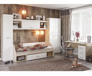 Цена указана за модули: Шкаф 2-х створчатый Симба (800 x 2000 x 570), Стол компьютерный Симба (1200 x 750 x 590), Пенал Симба (400 x 2000 x 570), Надстройка для кровати Симба (1942 x 478 x 266), Кровать Симба (1942 x 660 x 848)