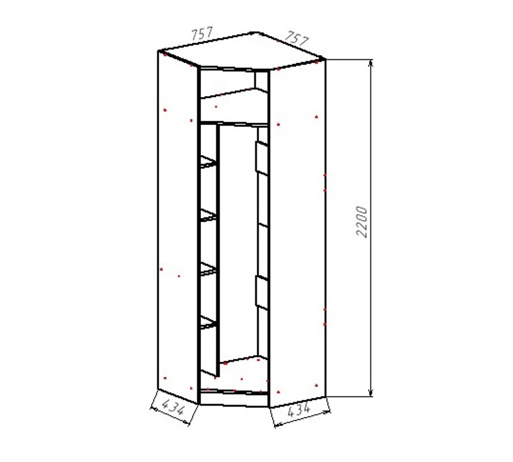 Габаритные размеры: 757х2200х757, глубина бока 450