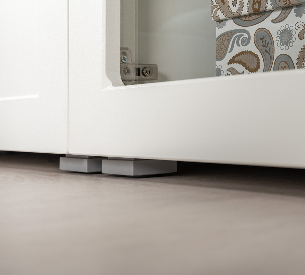 Петли и направляющие c доводчиками обеспечивают удобство и комфорт. Регулируемые опоры позволяют легко компенсировать неровности пола.