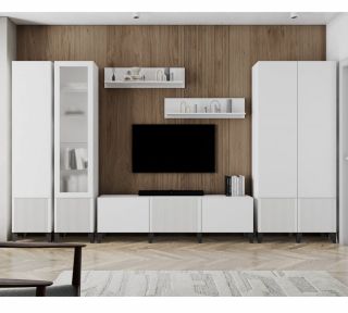 Стоимость указана за комплект: пенал 1 шт, пенал со стеклом 1 шт, тумба ТВ с опорами подвесная, полка навесная -2шт.