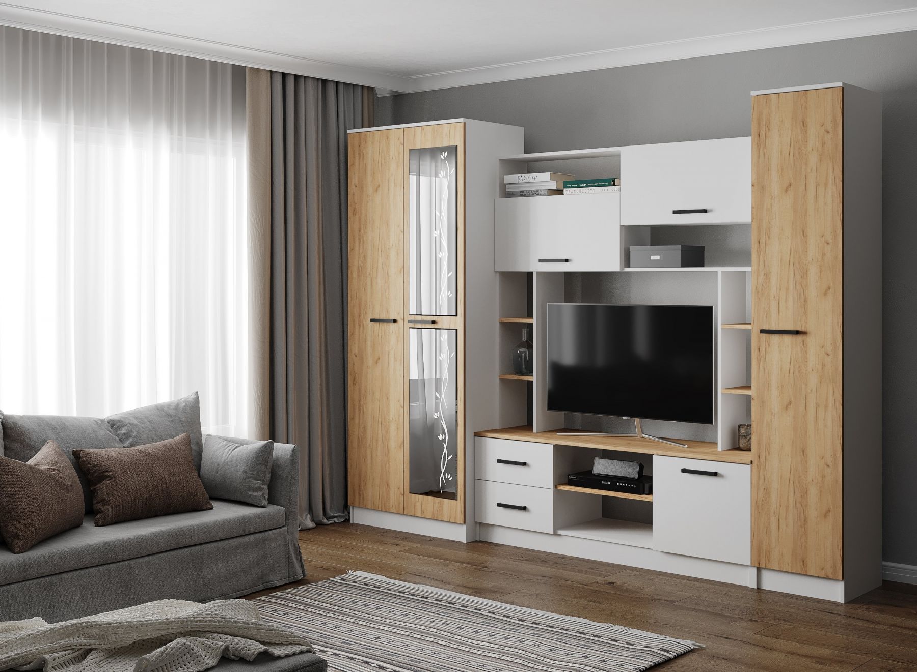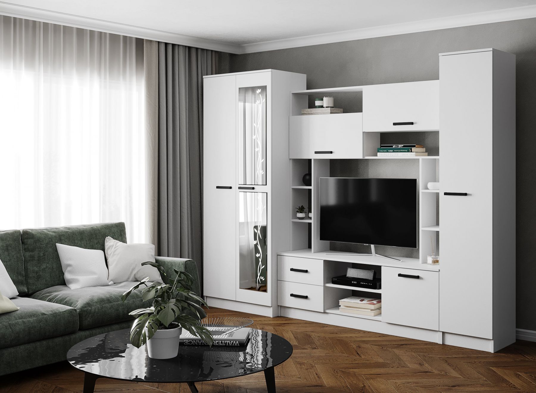 Вариант 2: Корпус ЛДСП Белый с тиснением «Древесные поры» «Kronospan», кромка 0,4 мм материалов Фасад ЛДСП Белый с тиснением «Древесные поры», ЛДСП Ателье Светлое «Kronospan», кромка 0,4 мм