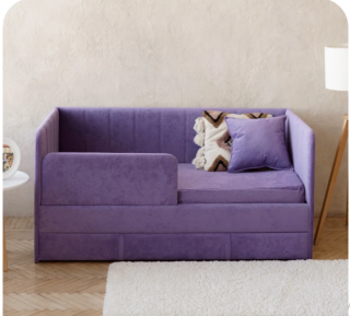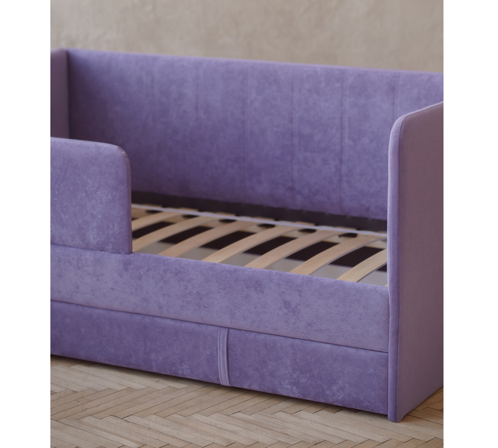 Детский диван-кровать 160*80 см Happy line в полоску сиреневый с ящиком и защитным бортиком, кровать детская от 3х лет (без матраса)