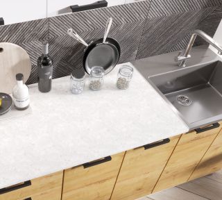 Столешница цельная шириной 1000 мм, кроме модуля под мойку.