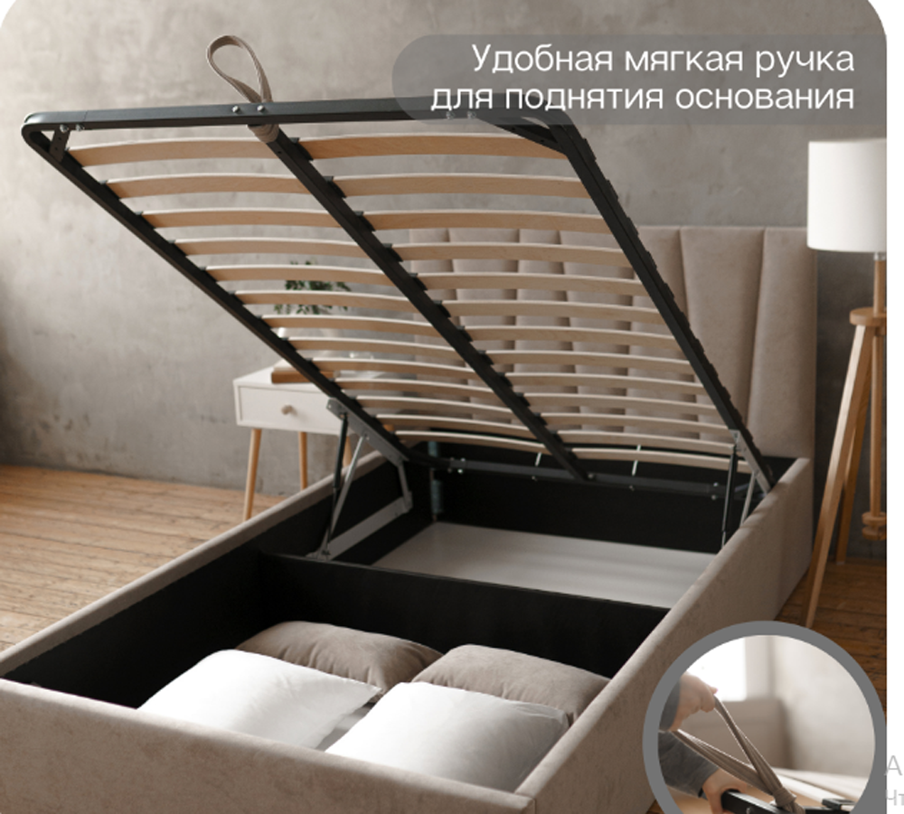 Двуспальная кровать KELLY 140х200 с подъемным механизмом двуспальная, с мягким изголовьем для дома, для спальни, ортопедическое основание, ламели усиленные, ящик для белья, велюр.