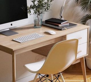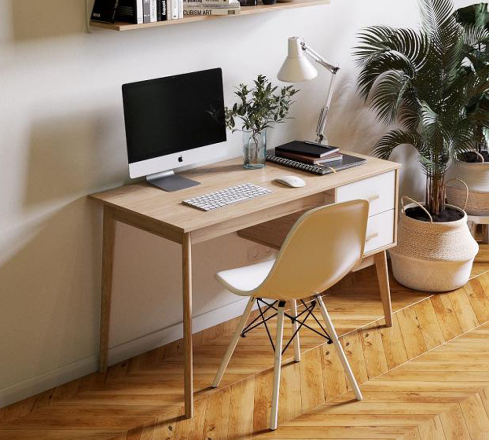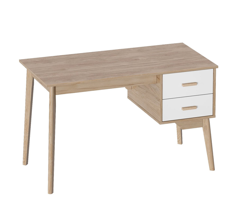 Письменный стол с тумбой "Калгари" прекрасно дополнит гостиную "Калгари'' в скандинавском стиле. Под столешницей расположены два ящика на шариковых направляющих. Столешница и корпус изделия выполнены из ЛДСП цвета натурального дуба, фасады ящиков - из МДФ. Ручки - массив березы.