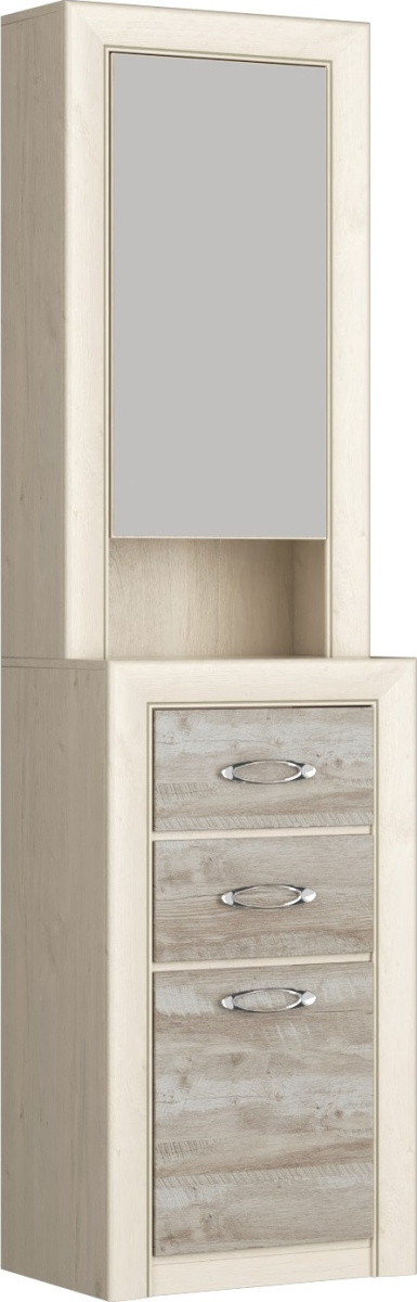 Рамочные декоративные накладки с патиной Металлические ручки и крючки Эко ЛДСП Задний щит (ДВП) в цвет корпуса Стеклянные или ЛДСП полки на выбор Полновыкатные направляющие Крепежный элемент - эксцентриковая стяжка