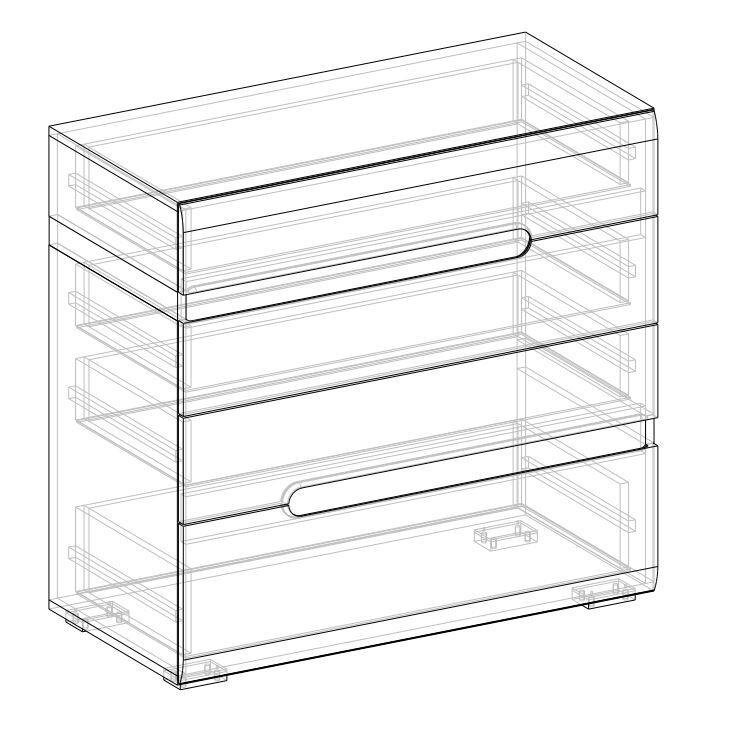 Фасад МДФ С фрезеровкой Петли с доводчиком Полновыкатные направляющие Эко ЛДСП Задний щит (ДВП) в цвет корпуса Крепежный элемент - эксцентриковая стяжка Оригинальное исполнение ручек