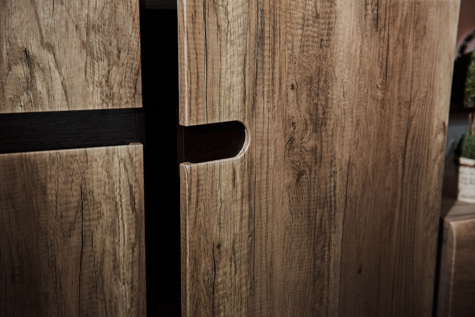 Фасад МДФ С фрезеровкой Петли с доводчиком Полновыкатные направляющие Эко ЛДСП Задний щит (ДВП) в цвет корпуса Крепежный элемент - эксцентриковая стяжка Оригинальное исполнение ручек