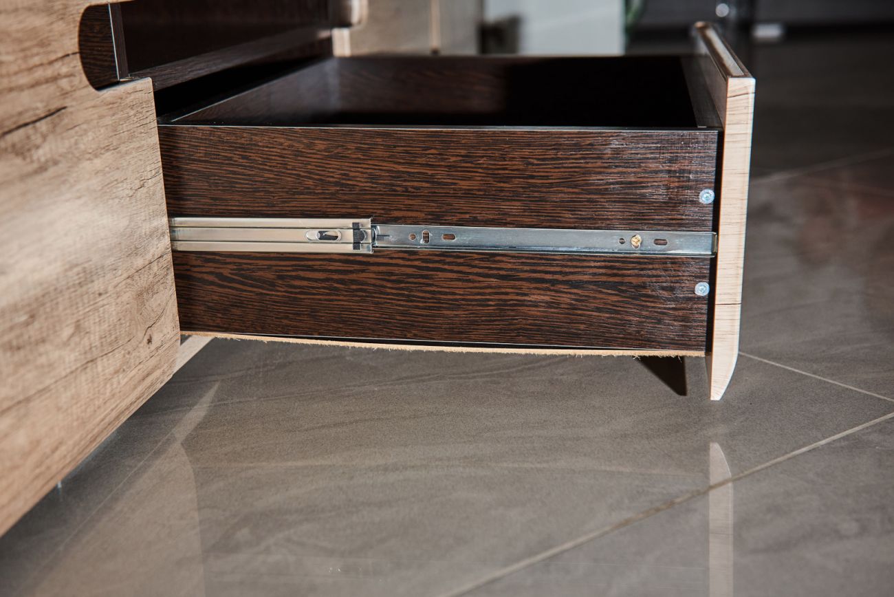 Фасад МДФ С фрезеровкой Петли с доводчиком Полновыкатные направляющие Эко ЛДСП Задний щит (ДВП) в цвет корпуса Крепежный элемент - эксцентриковая стяжка Оригинальное исполнение ручек