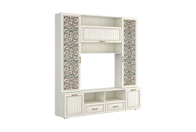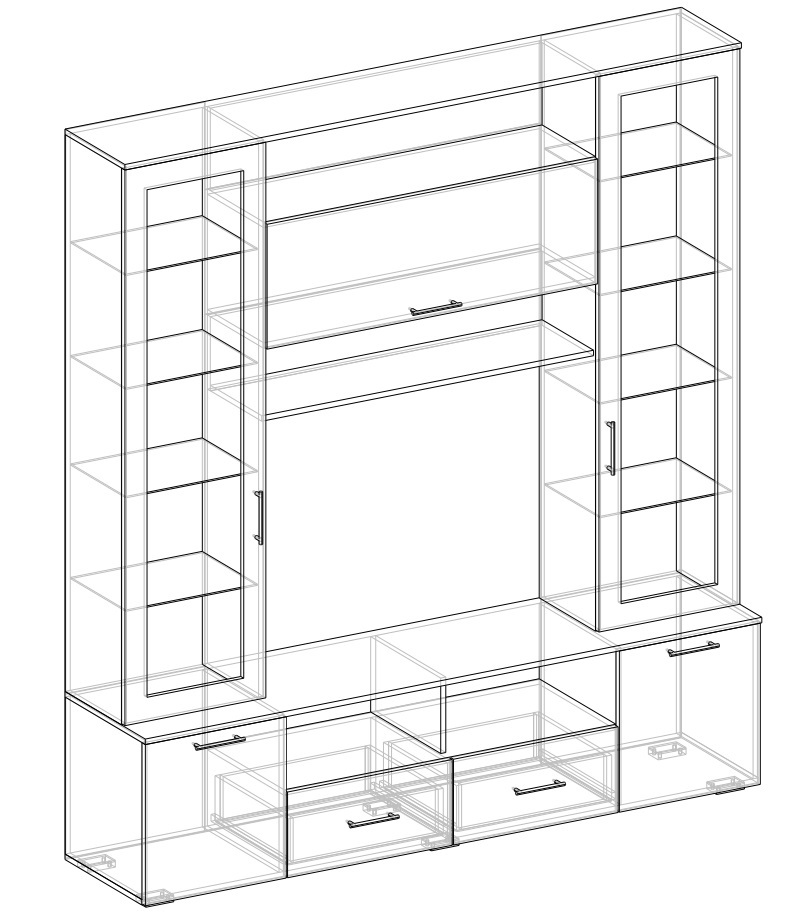 Кромка ПВХ 2 мм/Рамочный фасад МДФ с фрезеровкой/Корпус ЛДСП/Стекла с пескоструйной обработкой/ДВП в цвет корпуса/Крепежный элемент-эксцентриковая стяжка/Петли с доводчиком/Полновыкатные направляющие/Карниз Ясень Анкор Белый
