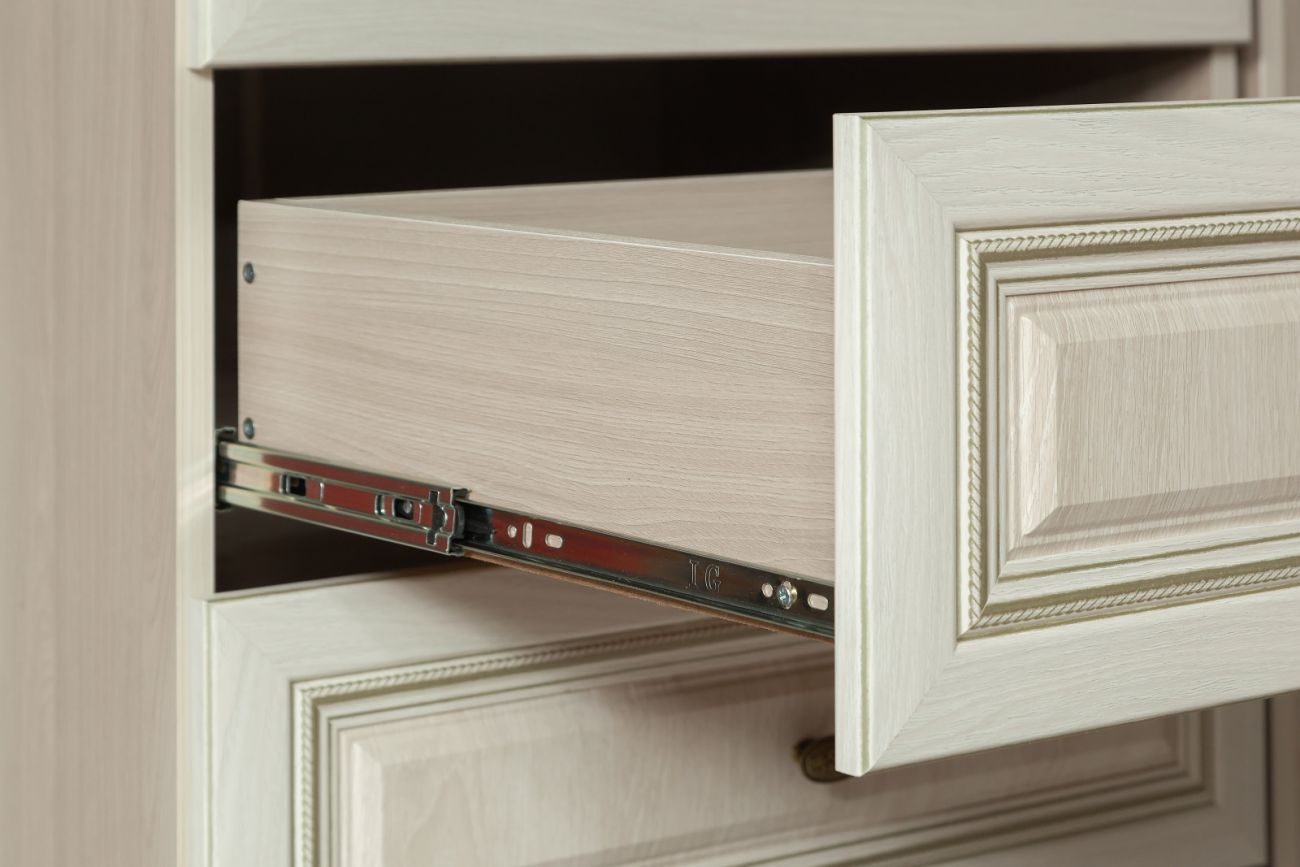 Кромка ПВХ 2 мм/Фасад МДФ с фрезеровкой/Фасад с зеркалом/Корпус ЛДСП/ДВП в цвет корпуса/Крепежный элемент-эксцентриковая стяжка/Прочный алюминиевый профиль (металл 1 мм)/Комплектуется карнизом Ясень Анкор Белый