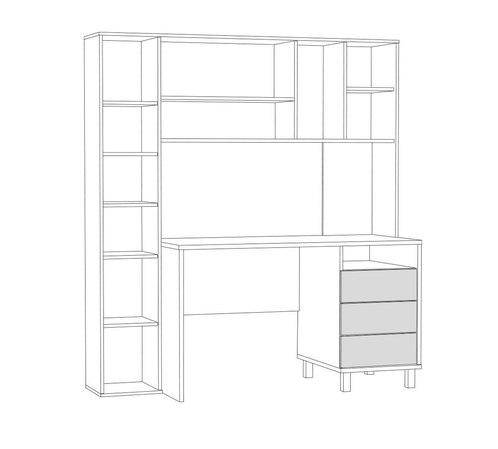 Фурнитура: Распашные двери на четырёхшарнирных петлях; выдвижные ящики -полновыкатные шариковые направляющие.