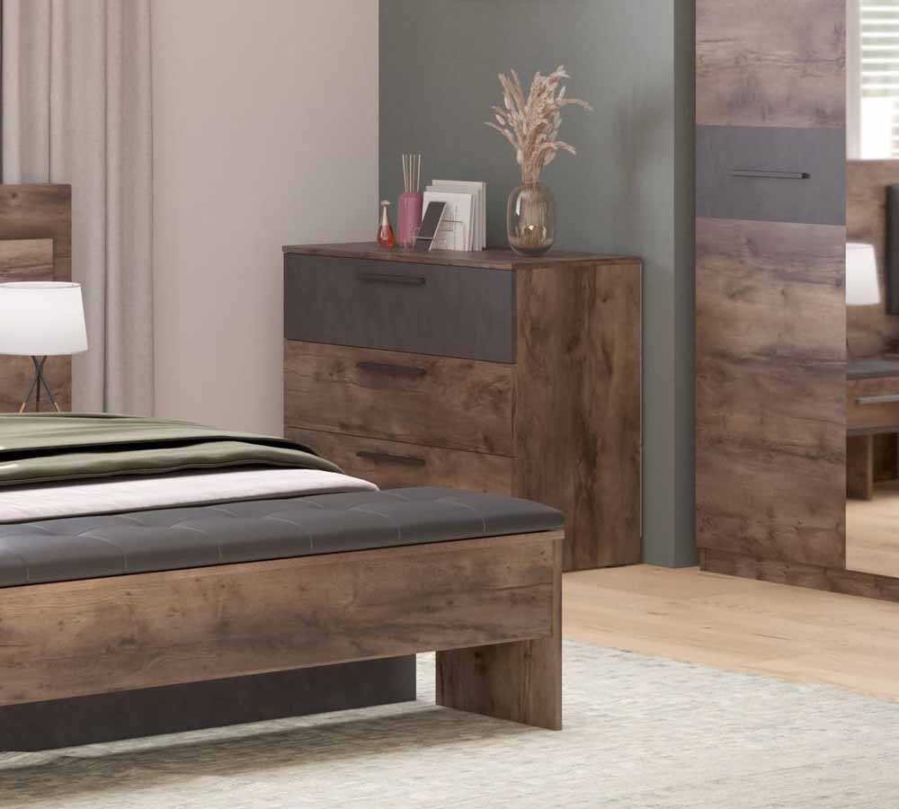 Коллекция Глазго - яркий пример брутальной спальни, которая отлично впишется в классический или современный стиль, а также удачно дополнит ваш интерьер в стиле Лофт. Теплую древесную текстуру цвета "Таксония" контрастно подчеркивает строгий графитовый оттенок "Металл Бруклин".
