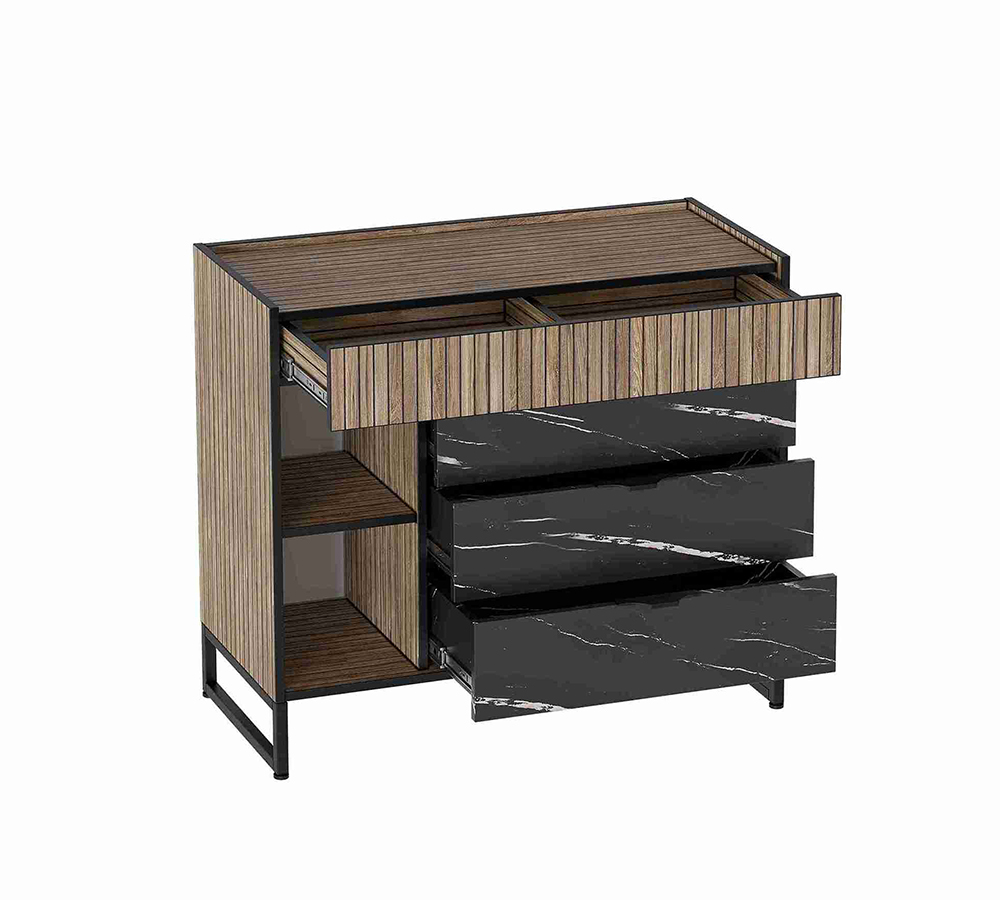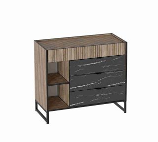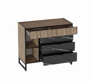 Комод Бьянка выполнен из (ЛДСП) в комбинации Дуб Гринвич / Мрамор неро.