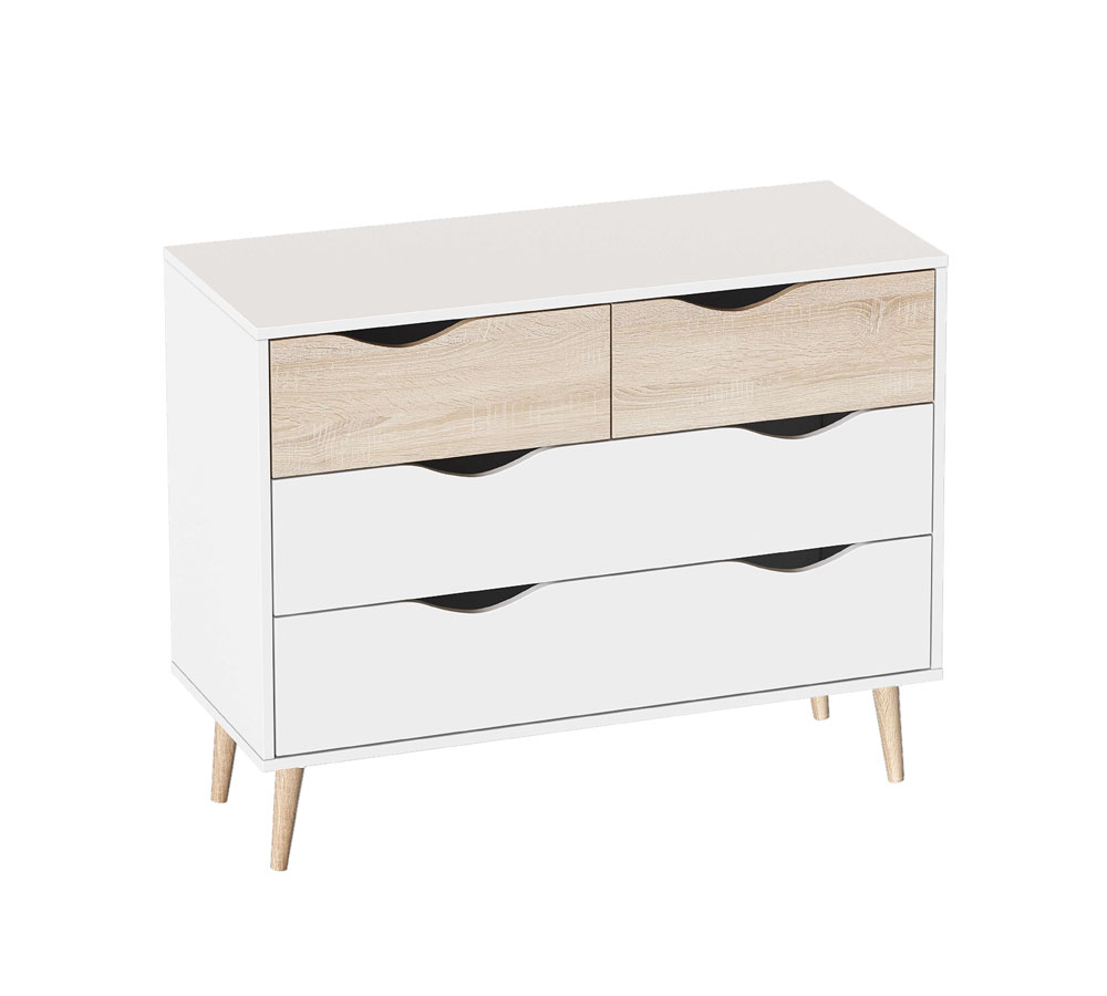 Серия «Соната» отличается простотой и натуральностью, выполнена в естественных тонах. В дизайне отчетливо улавливаются отсылки к скандинавской эстетике: чистые линии корпуса, использование белого цвета в отделке фасадов, расставленные в стороны высокие стильные опоры, выполненные из массива березы.