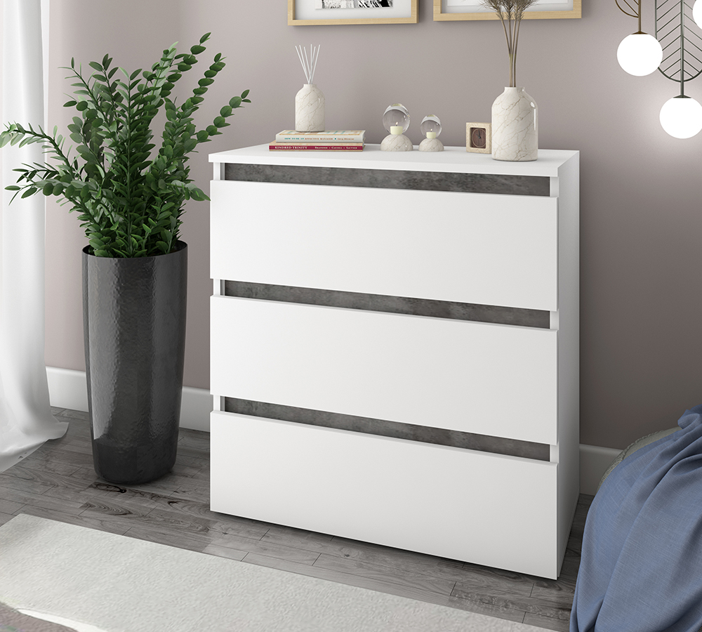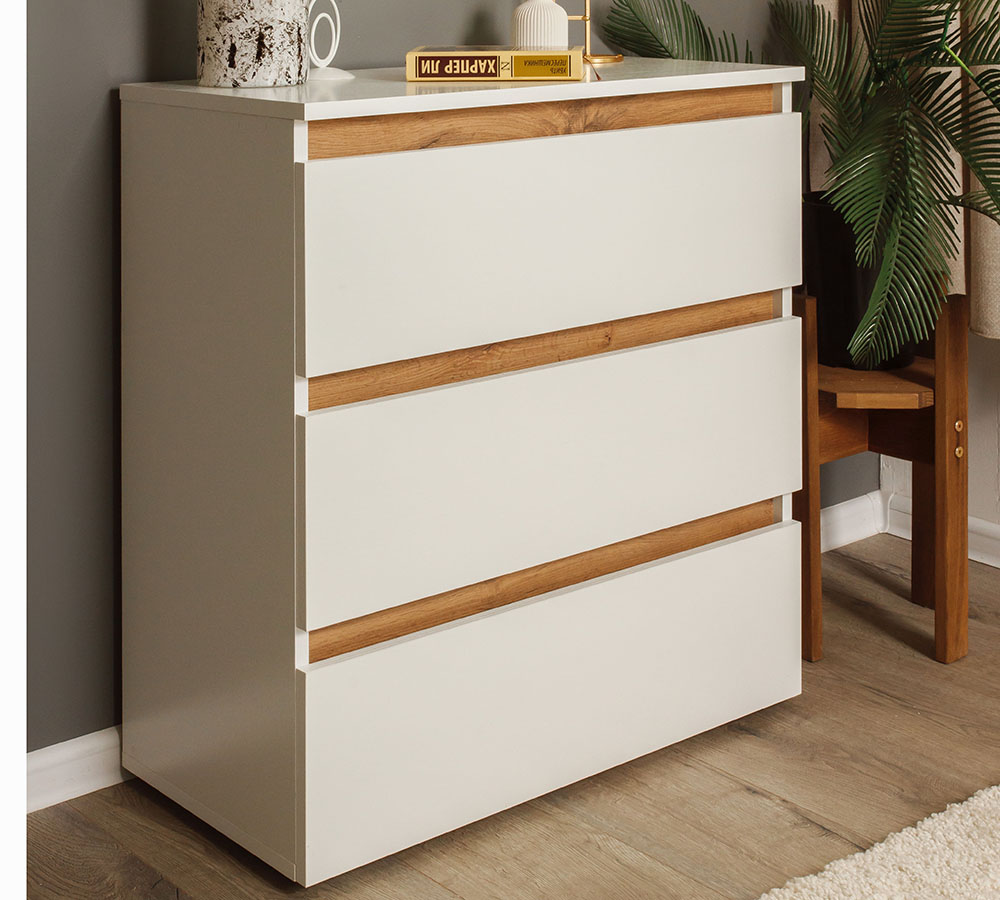 - Комод с тремя ящиками - оптимальное решение как для спальни, так и для офиса.