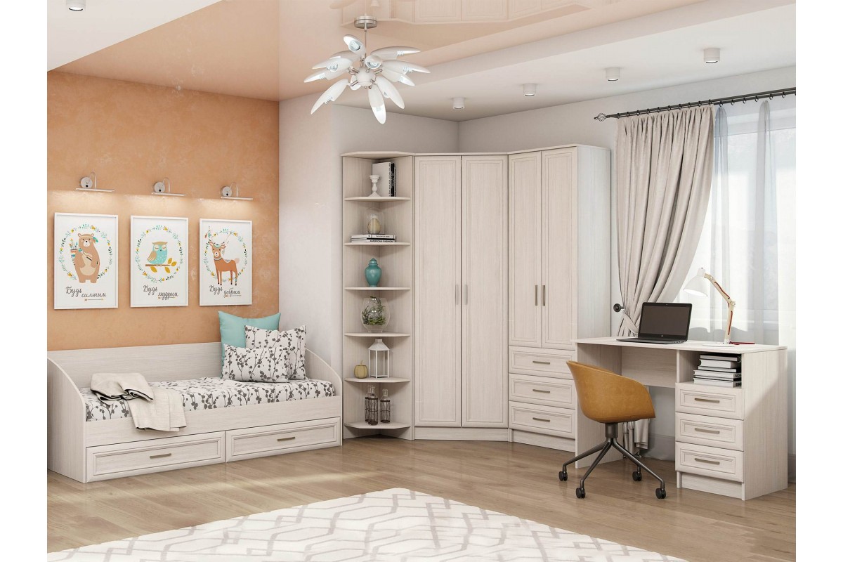В детском гарнитуре Принцесса есть возможность дополнить или поменять модули на ваше усмотрение. Ознакомится с ассортиментом можно в разделе Мебель для детской - Составные элементы. Детская Принцесса подойдёт для девочек начиная со школьного и до старшего возраста. Кровати разных вариаций, комоды и другие удобные модули на ваш выбор. Текстура светлого дерева, все фасады в фигурных рамках.