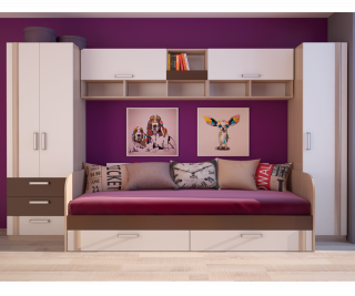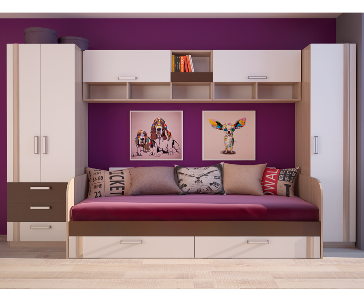 в комплектацию входит: Модуль 3 шкаф,Модуль4 пенал, Модуль 13 кровать с ящиками, Модуль 11 полка, Модуль 10 полка,