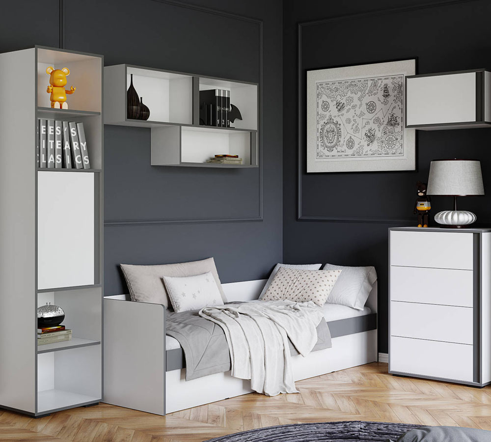 Цвет: Белый с тиснением «Древесные поры» / Графит Серый