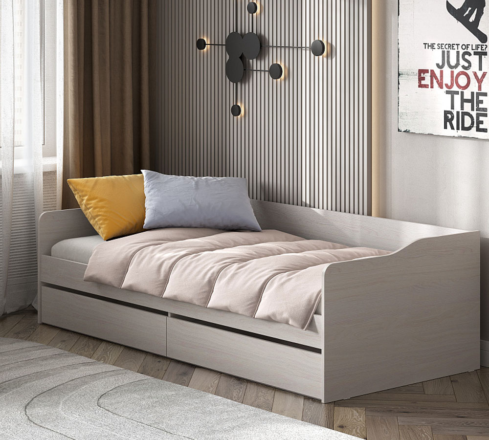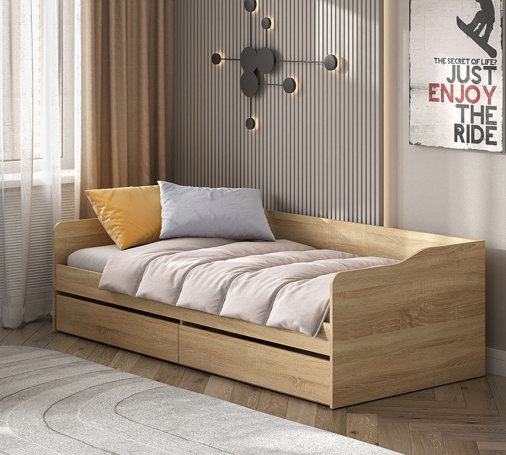Кровать комплектуется двумя выдвижными ящиками. Фасады ящиков не комплектуются