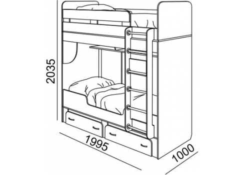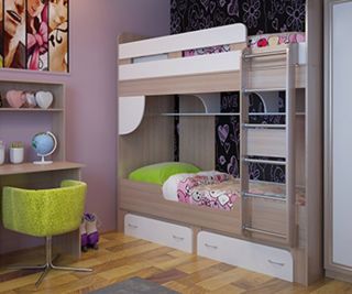 Кровать двухъярусная, размеры спального места 800*1900мм матрасы в комплект не входят. Элемент модульной детской Остин
