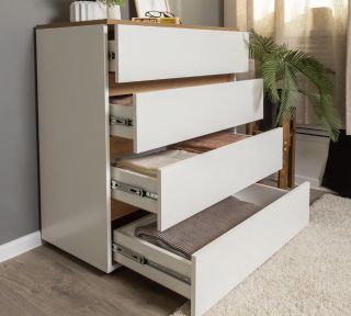 Комод представлен в 2-ух вариантах расцветки: натуральный, теплый и элегантный - «дуб крафт/белый текстурный», - модный, современный и лаконичный - «бетон/белый текстурный».