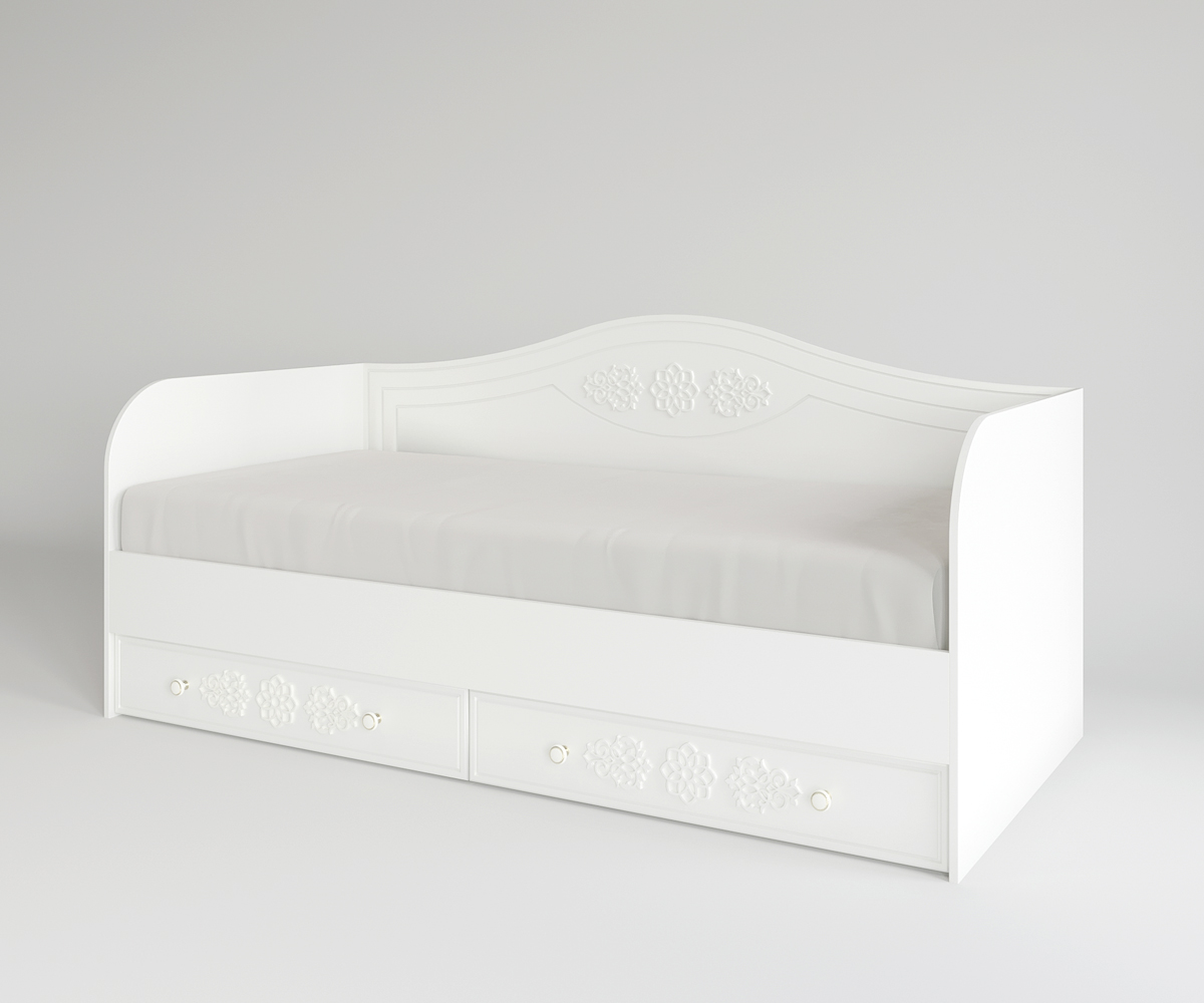 Кровать софа с двумя выдвижными ящиками, цвет белый. Можно дополнить элементами модульной детской Ки-Ки.
