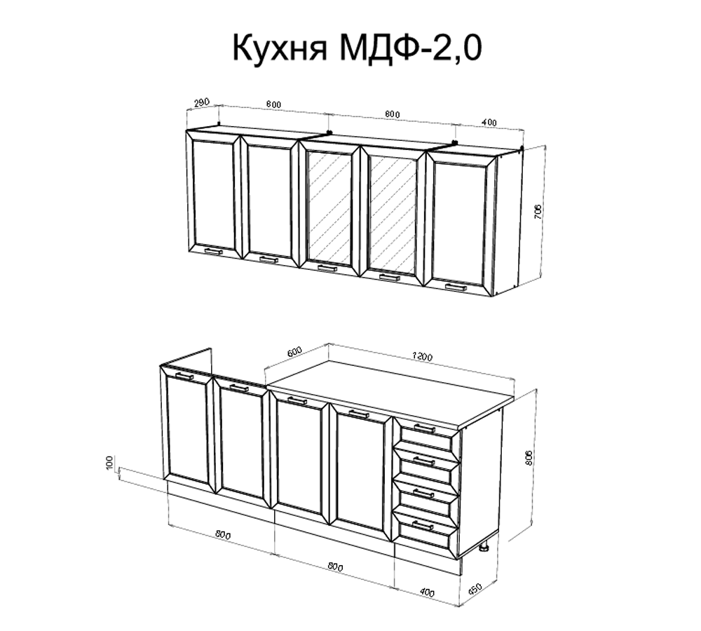 Спецификация:Верхние шкафы (В х Г): 700 х 290 мм.