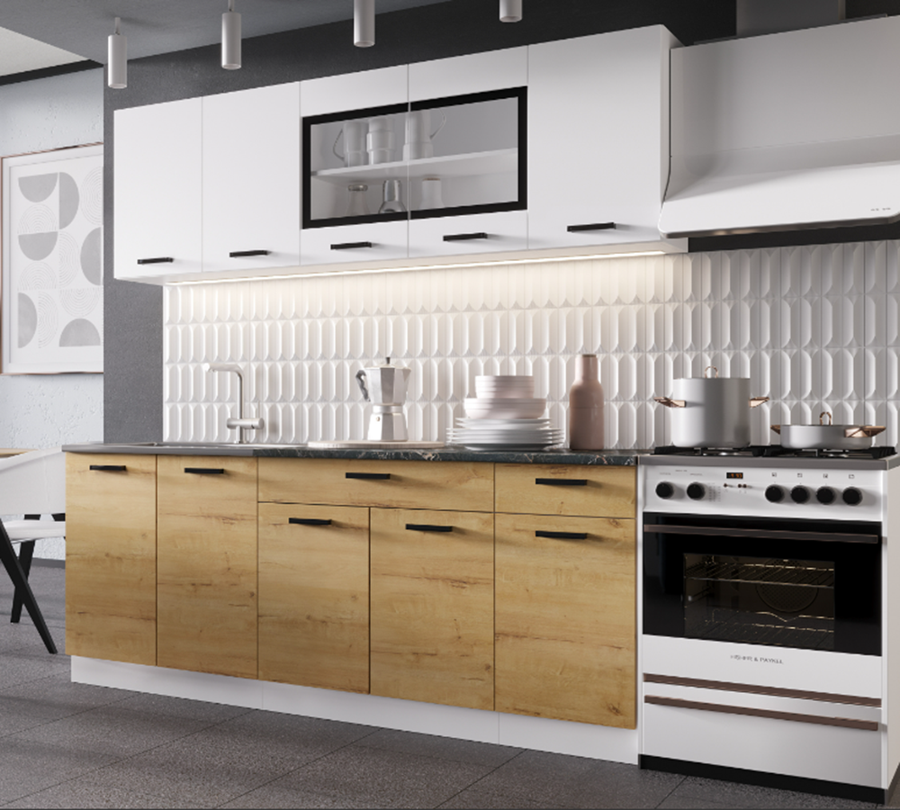 Глубина верхних и нижних шкафов указана без учета фасада.