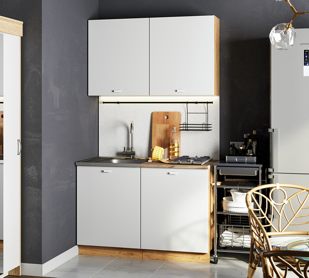 Практичный комплект из ЛДСП длиной 1,2 метра в современном стиле спроектирован для удобного ежедневного использования.