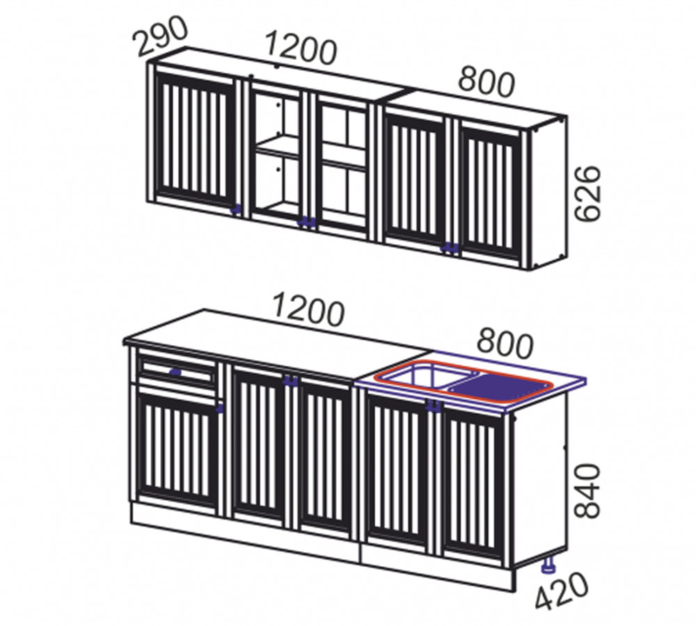 Глубина Верх Шкаф 300 мм Низ Стол 480 мм