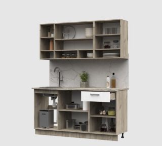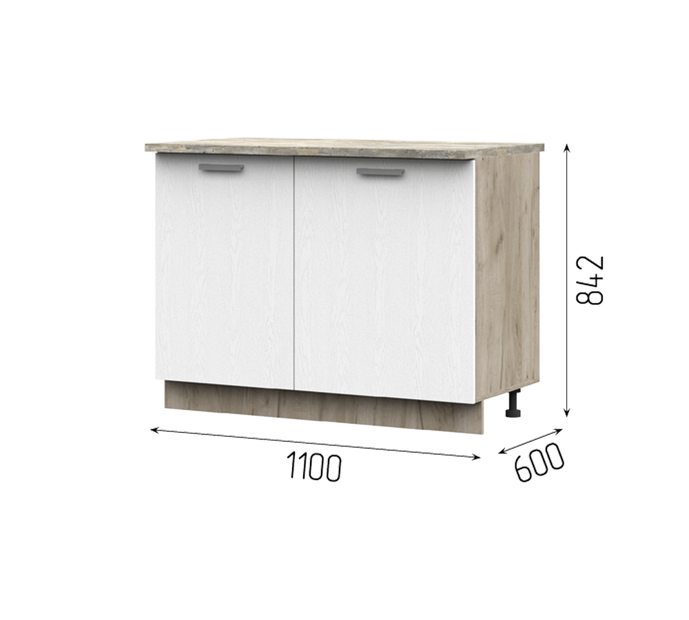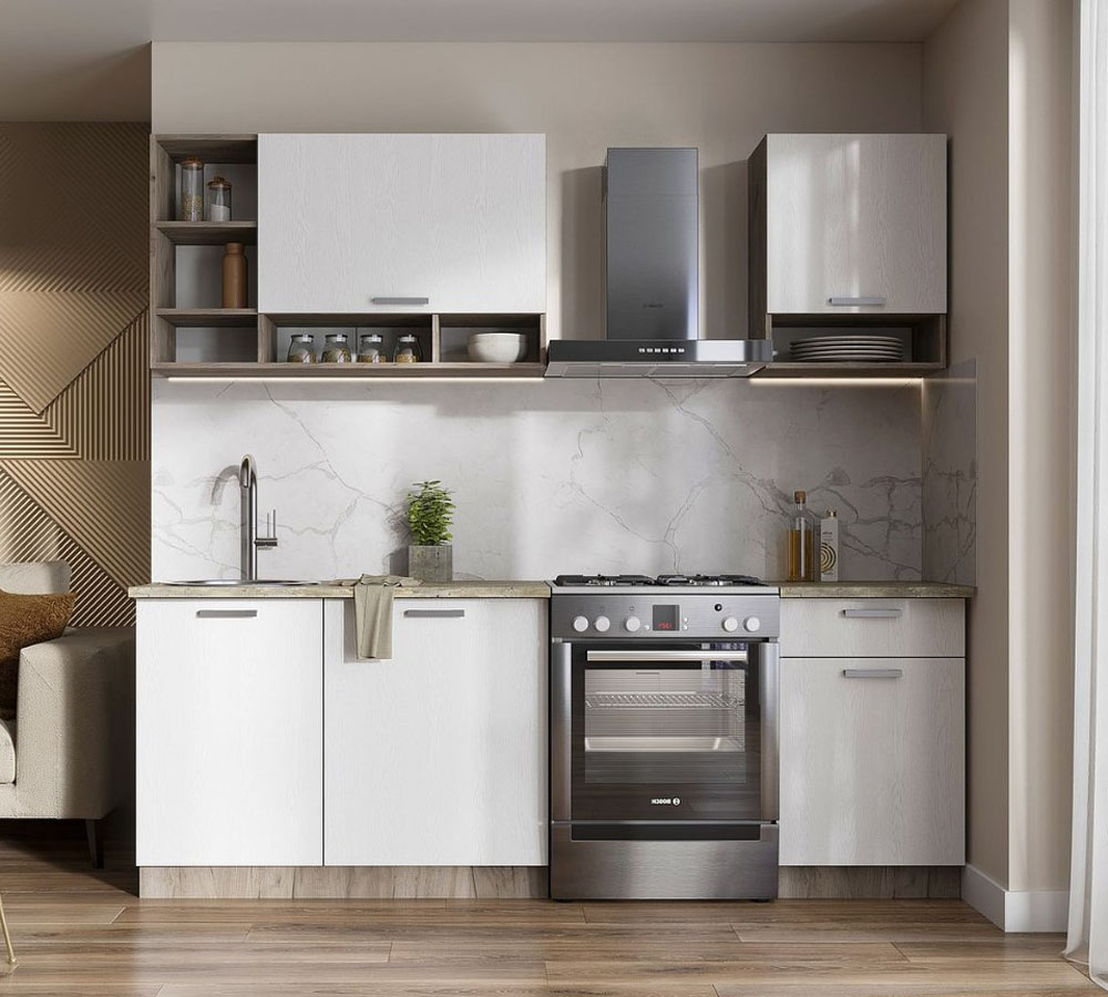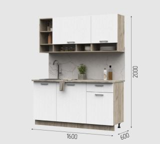 В комплект не входят: бытовая техника, мойка, посудосушитель, смеситель и стеновая панель. Они приобретаются отдельно.
