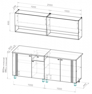 Высота верхних полок 600мм, глубина 296мм