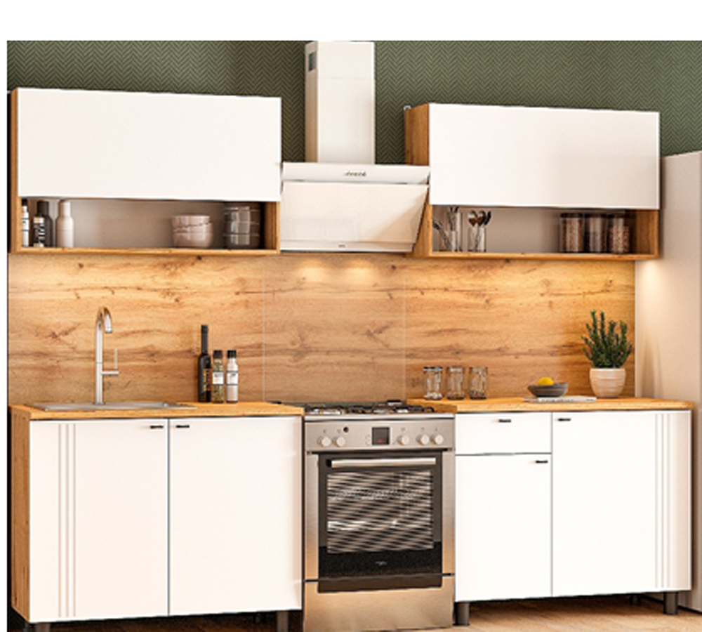 Фасады верхних модулей не имеют ручек, открытие за нижний край фасада.