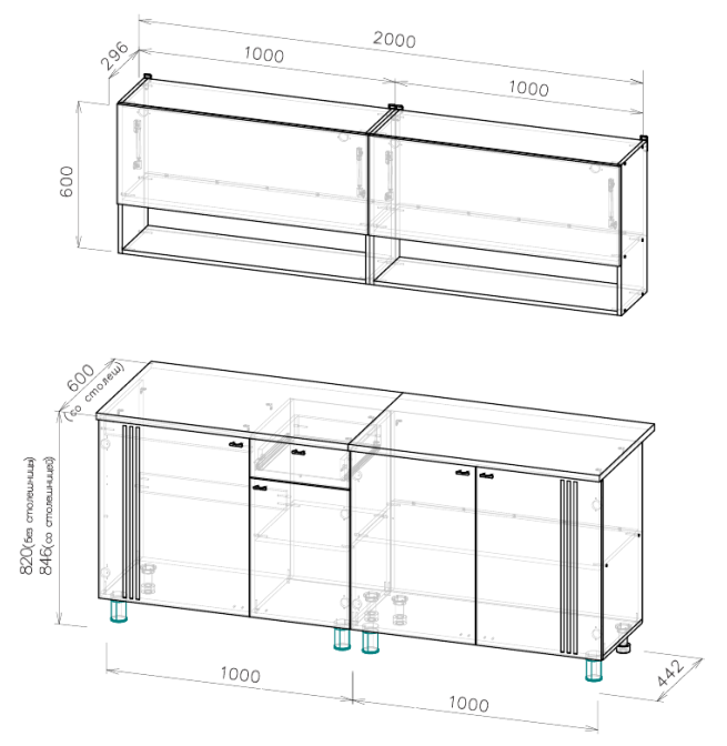 Высота верхних полок 600мм, глубина 296мм