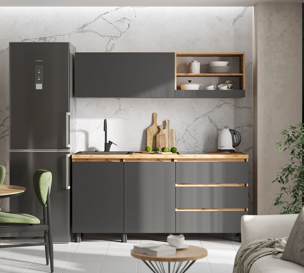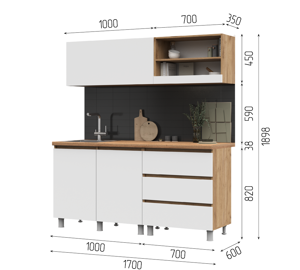 В комплект не входят: бытовая техника, мойка, посудосушитель, смеситель и стеновая панель. Они приобретаются отдельно.Новосибирск