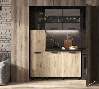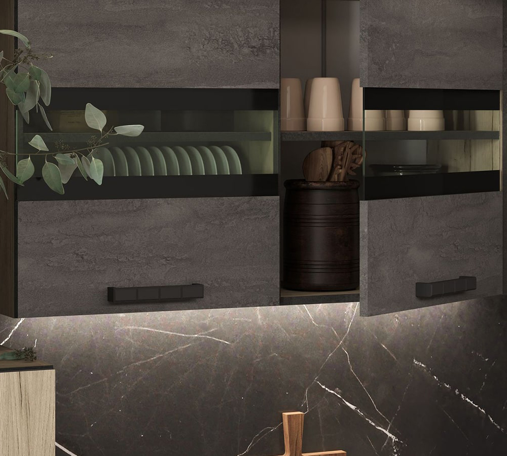 В комплект не входят: бытовая техника, мойка, посудосушитель, смеситель и стеновая панель. Они приобретаются отдельно.