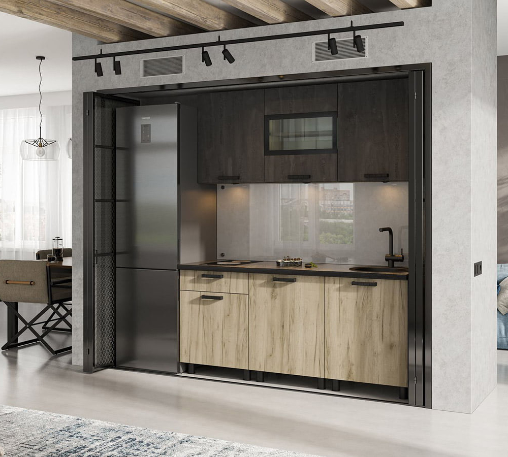 В комплект не входят: бытовая техника, мойка, посудосушитель, смеситель и стеновая панель. Они приобретаются отдельно.
