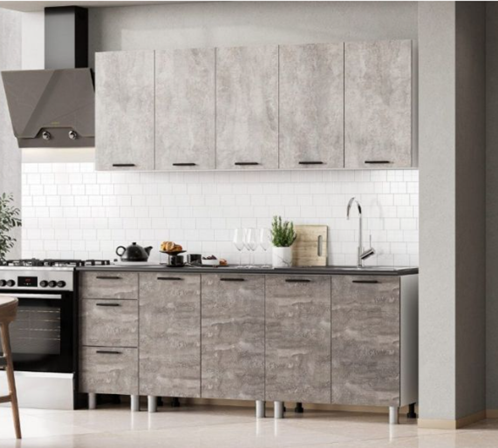Кухонный гарнитур Модус Лайт (2,0м) (ЛДСП) (Цемент светлый/Камень темный/Черный)