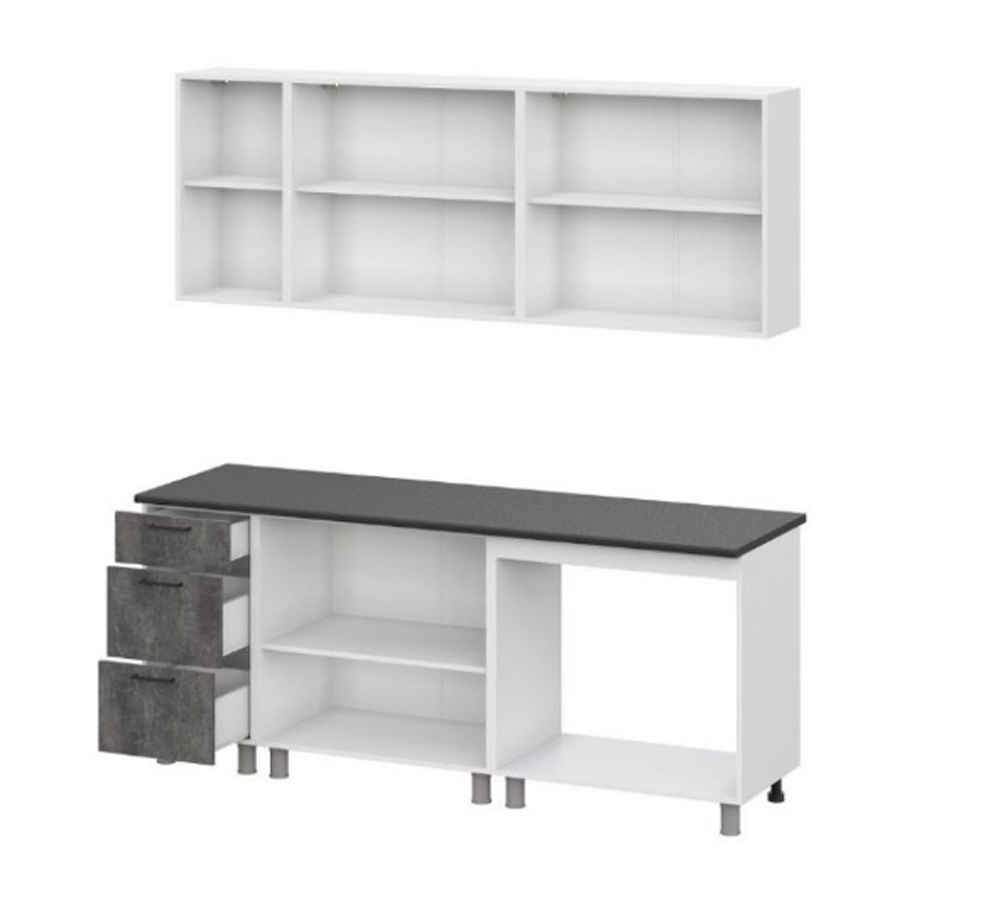 Цвет: верх фасадЦемент светлый, низ фасад Камень темный , столешница Черный, каркас Белый.