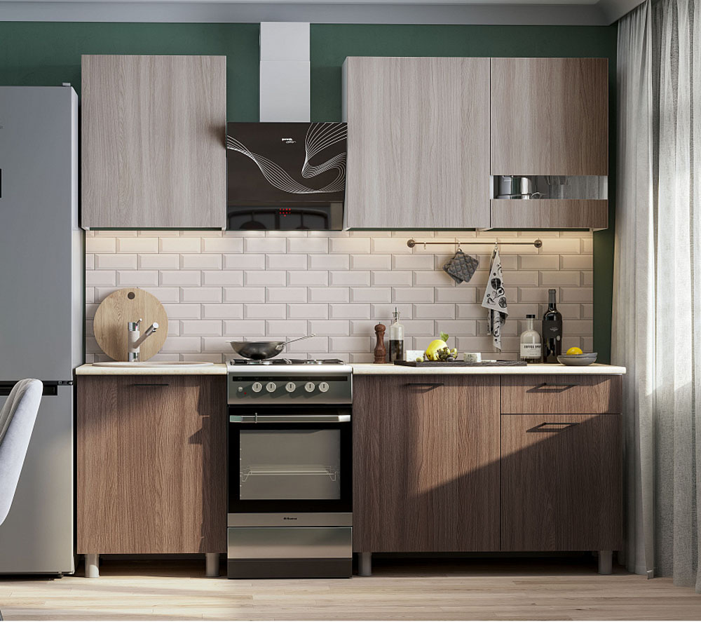 3) Корпус ЛДСП: «Белый»; Фасады ЛДСП Верх/ Низ: «Дуб Млечный/ Дуб Венге»;