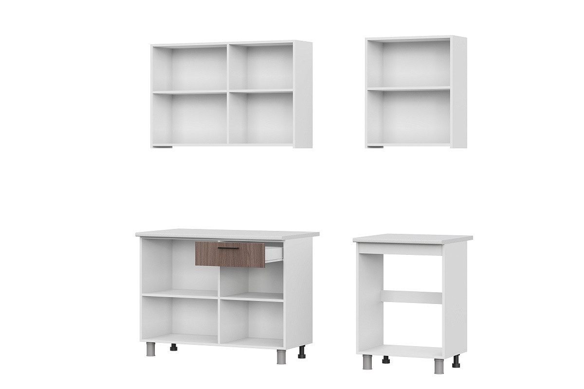 Гарнитур представляет собой набор из двух рабочих столов и двух навесных шкафов: