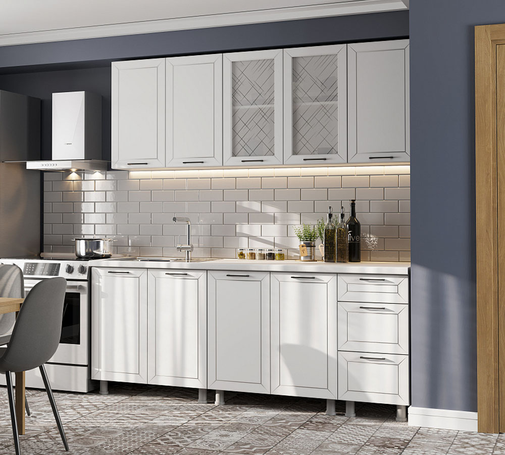 - Корпуса модулей в цвете «Белый» комплектуется петлями со встроенными доводчиками.