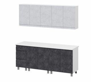 Кухонный гарнитур Вельвет Лайт 2.0 м (Бетон Снежный/Бетон графит/Антарес)
