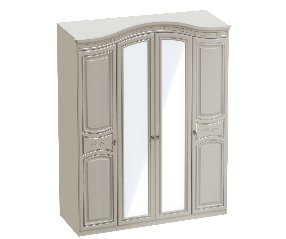Шкаф комбинированный 4х дверный с зеркалом. Мебель "Николь" — яркий пример классического стиля. В таком цветовом исполнении Шкафы можно вписать в самые разные интерьерные стили: цветовая гамма отлично сочетается с другими оттенками. А благодаря компактности останется место и для других функциональных предметов, которые обязательно должны быть в комнате.